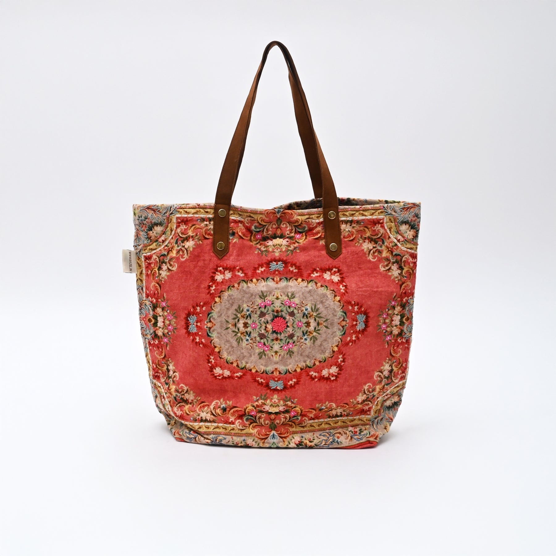 The warm coral-red background combined with delicate ornamental motifs gives the tote a distinctive, heritage-inspired style that stands out while remaining versatile for daily use. Made from soft yet durable cotton, the bag is lightweight and comfortable to carry throughout the day.