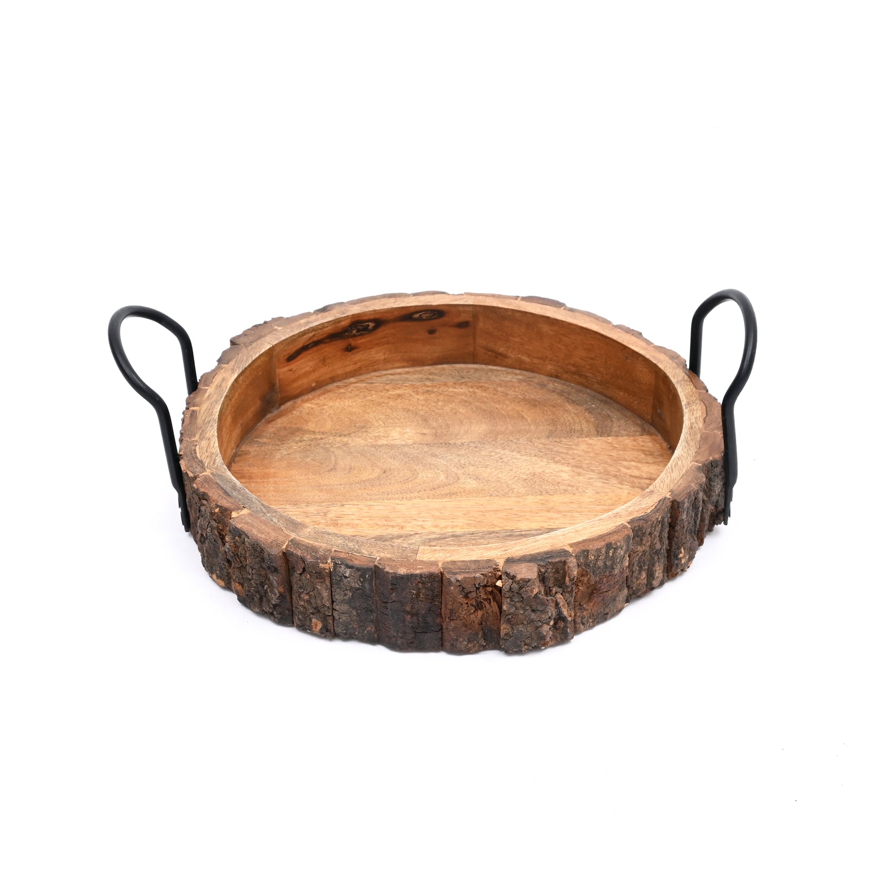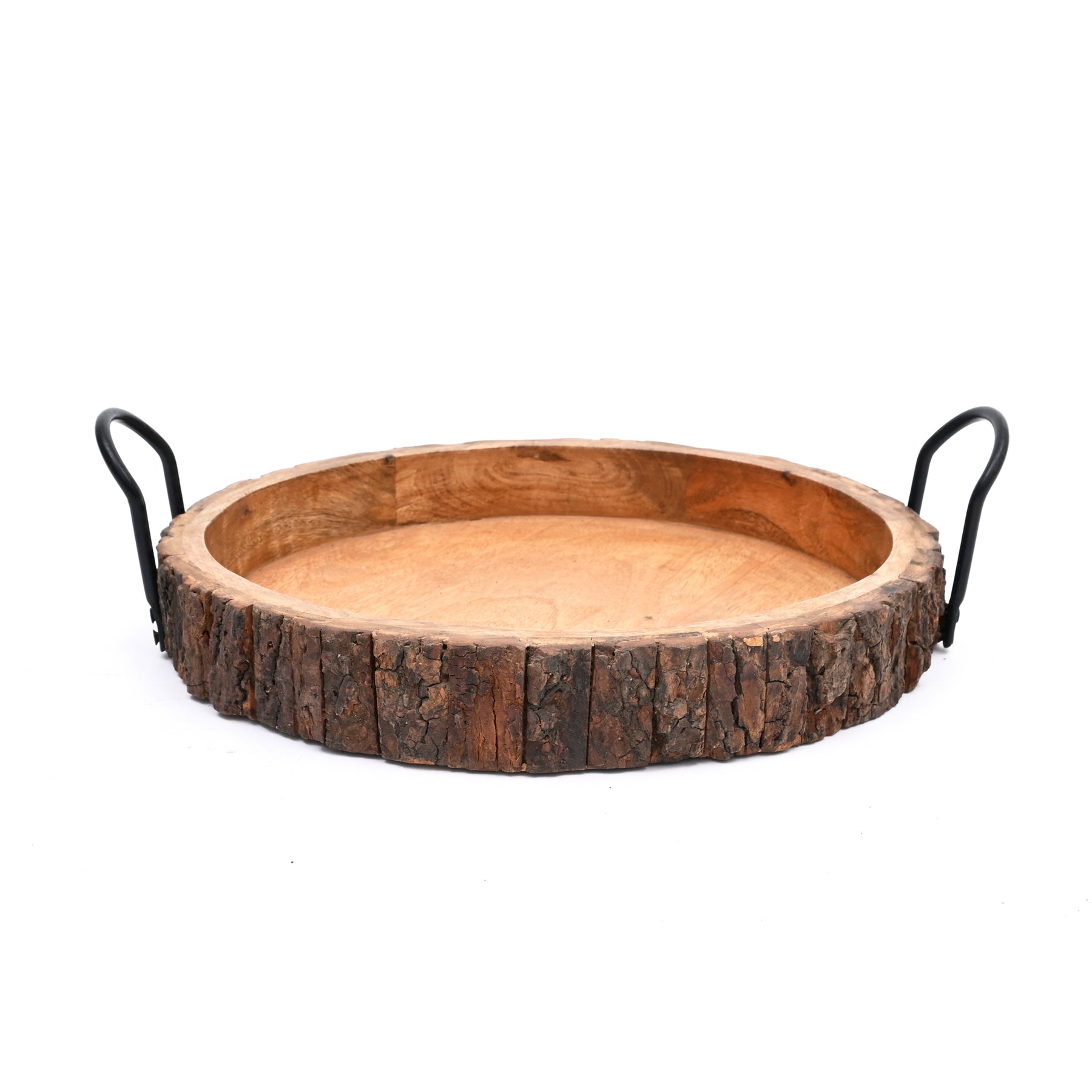 Rustic charm meets functional design in this Bark Tray Medium with Iron Handle. Expertly crafted from natural wood with raw bark edges, it highlights the organic beauty and texture of the material. Sturdy iron handles add an industrial touch while ensuring easy and safe handling.