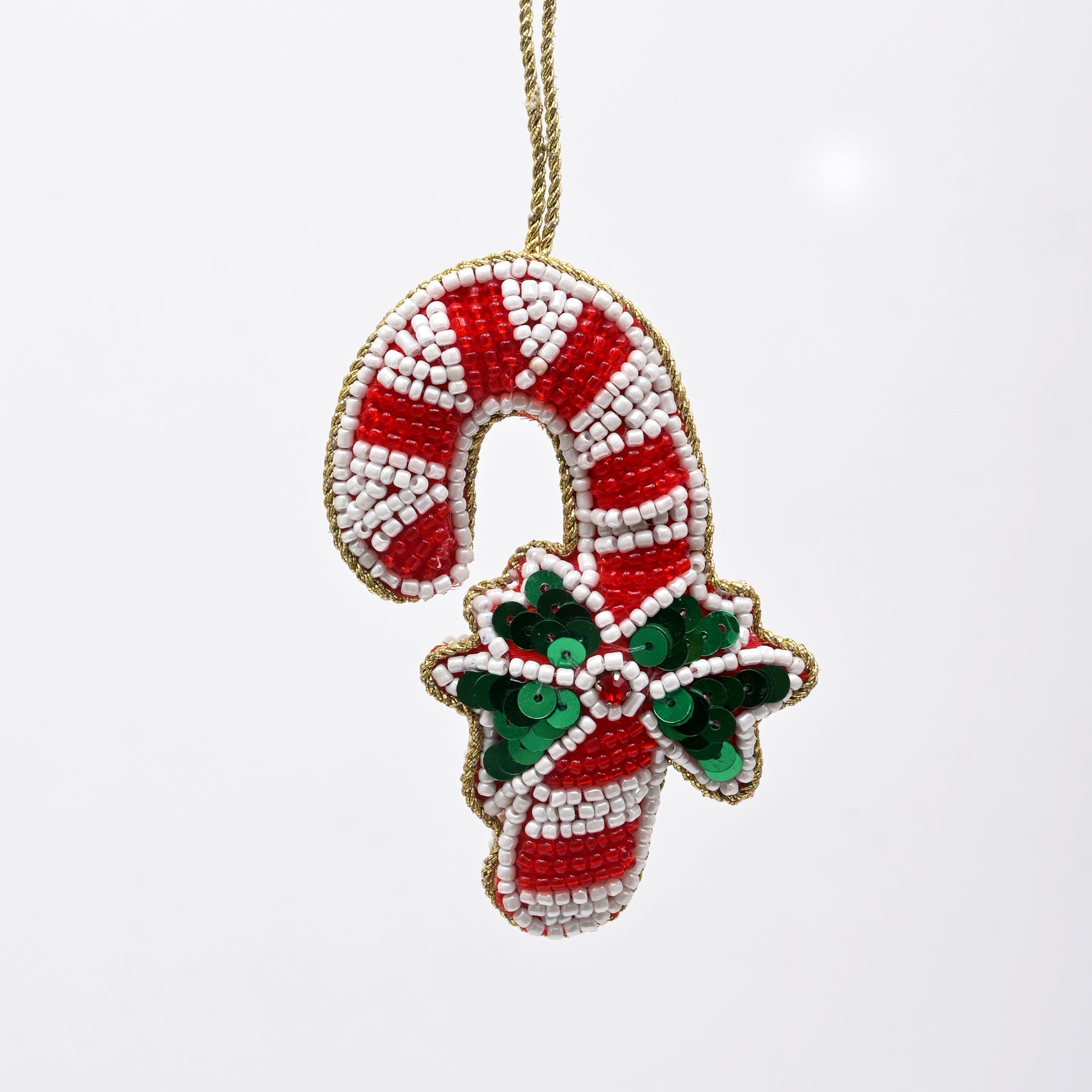 This charming felt candy cane hanging ornament adds a classic festive touch to Christmas décor. Crafted from soft felt and detailed with colourful bead accents, it offers a warm handmade feel with playful seasonal charm.