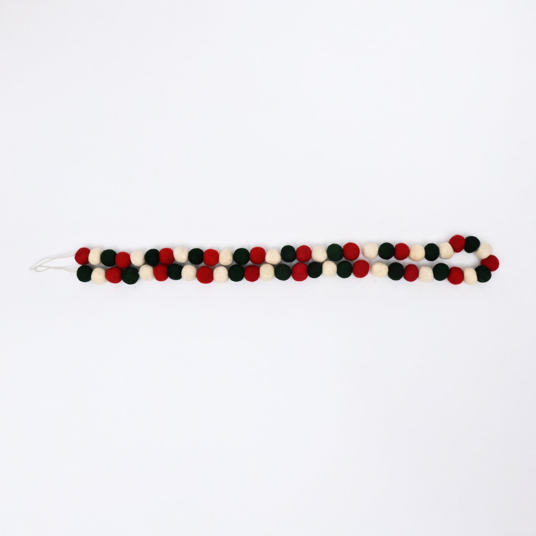 This classic red and green felt ball garland captures the true spirit of Christmas with traditional holiday colors. Soft felt balls are evenly spaced to create a cheerful and festive appearance.