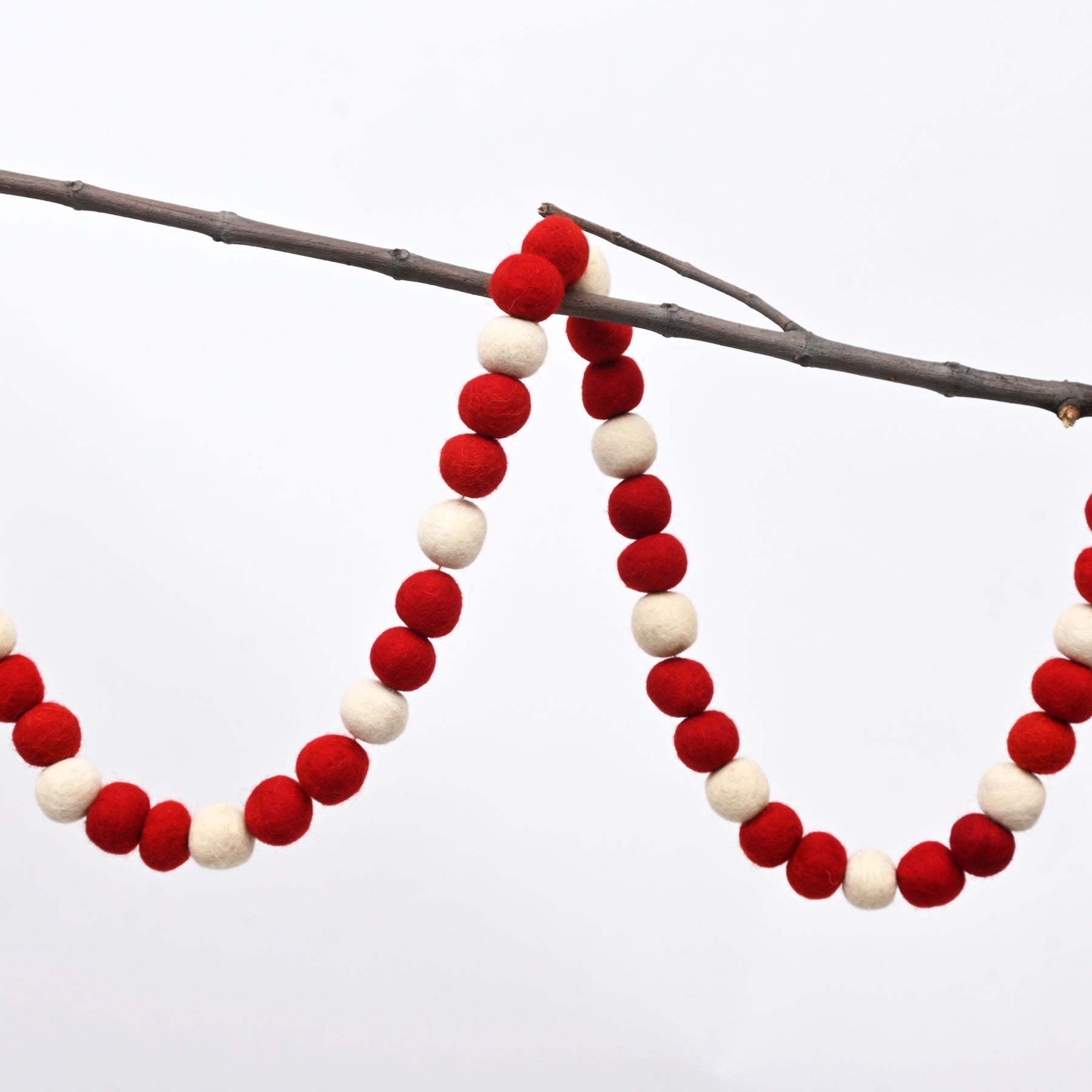 This felt ball garland combines rich red tones with soft natural white for a cozy and balanced holiday look. Its neutral color palette makes it easy to pair with a wide range of décor styles.