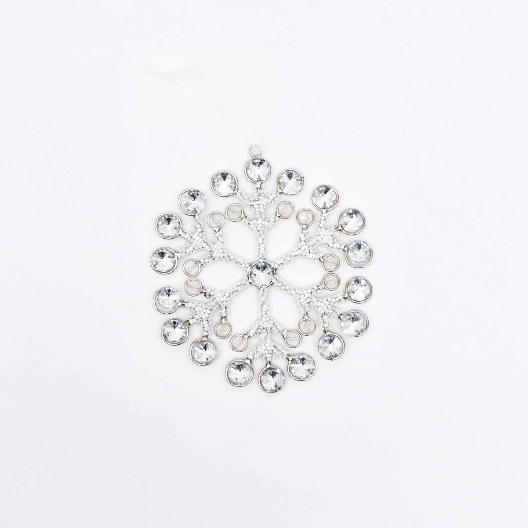 This elegant silver beaded snowflake hanging ornament adds a refined winter sparkle to Christmas décor. Crafted with aluminium and embellished with beads and stone details, it reflects light beautifully and creates a delicate, festive shimmer.