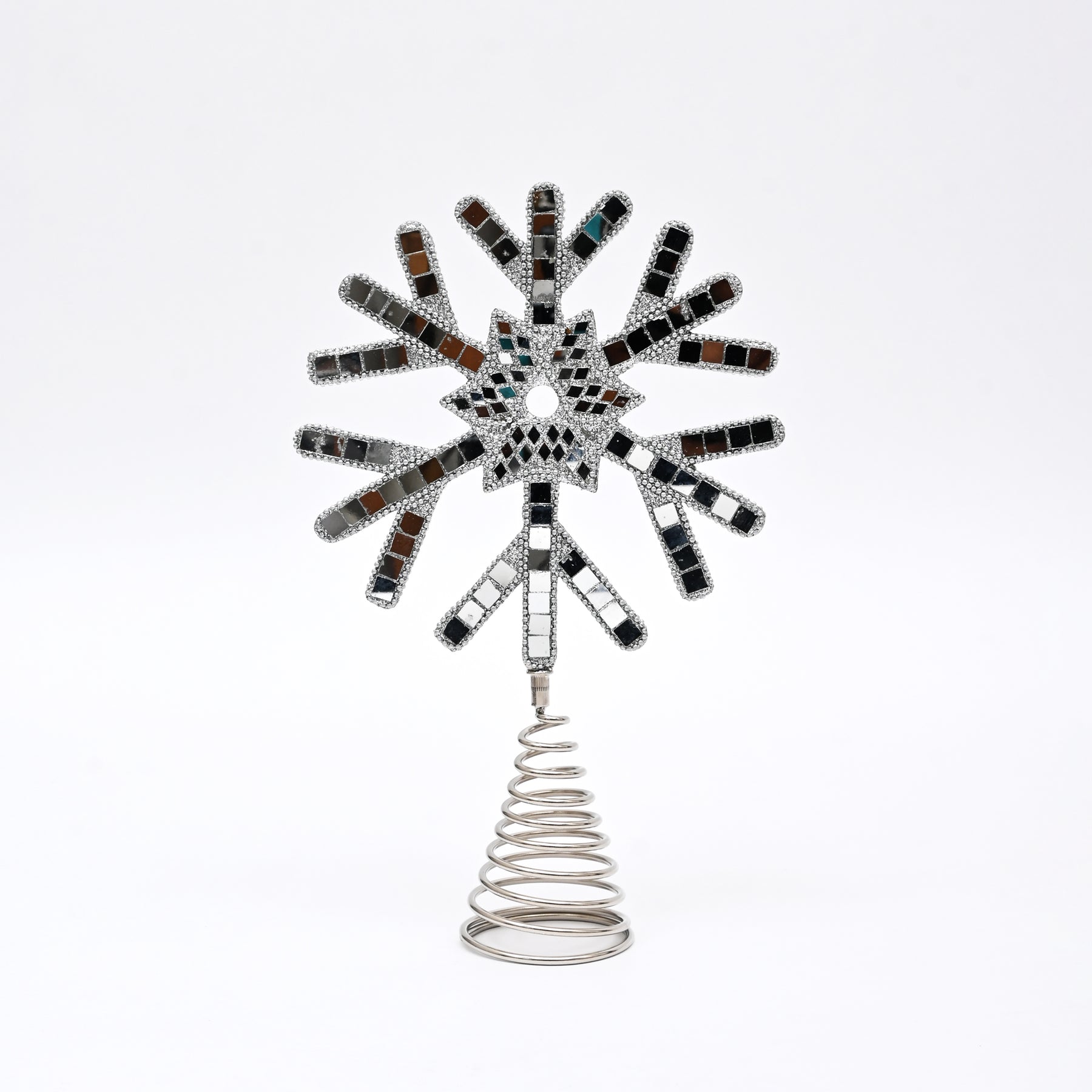The detailed snowflake design brings a classic winter charm, making it ideal for topping Christmas trees or styling as a decorative display piece. Its silver finish complements modern, minimalist, and traditional European holiday interiors.