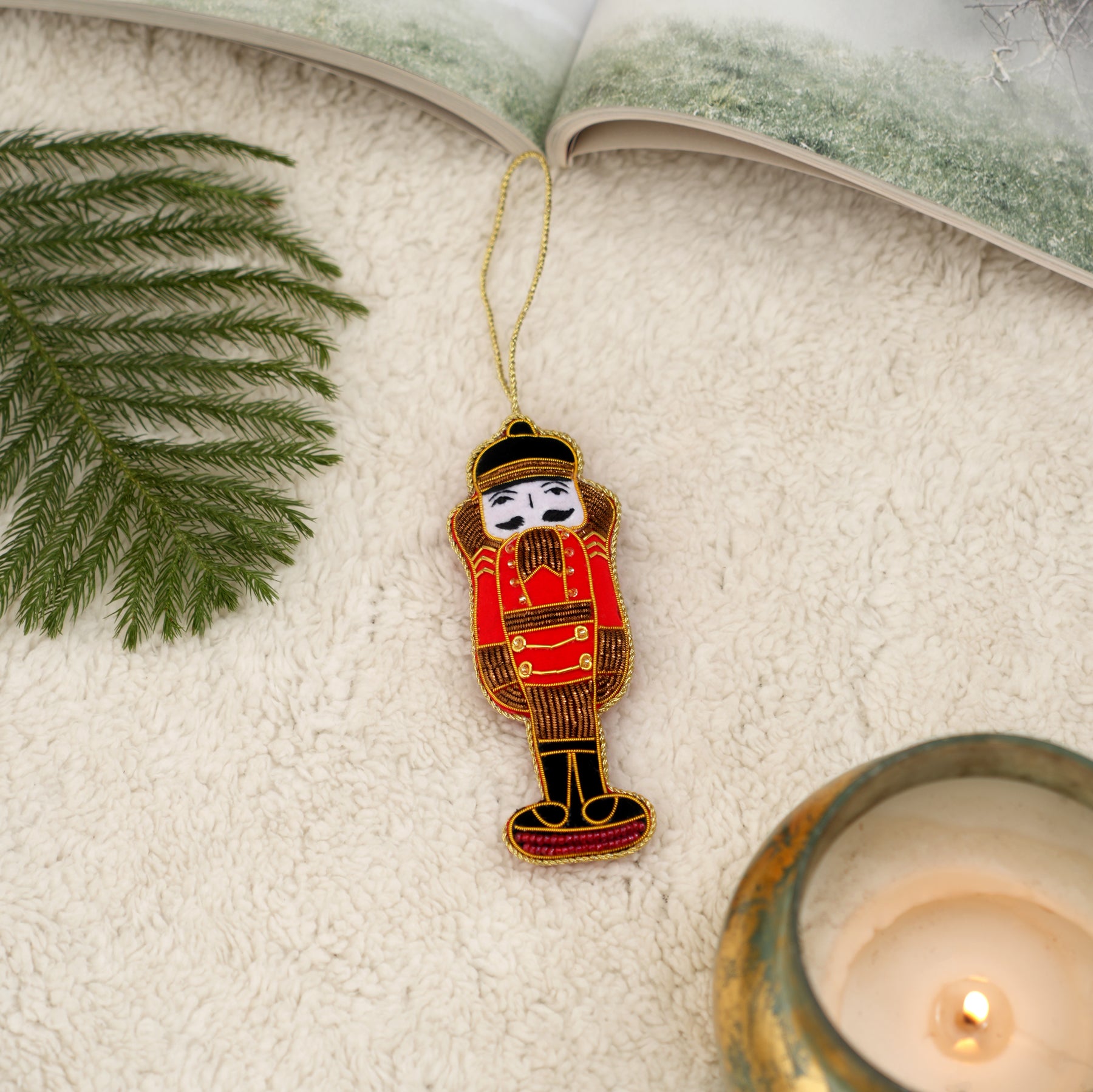 This elegant velvet nutcracker hanging ornament adds a classic and festive touch to Christmas décor. Featuring rich velvet fabric combined with decorative bead details, it brings depth, texture, and traditional holiday charm.