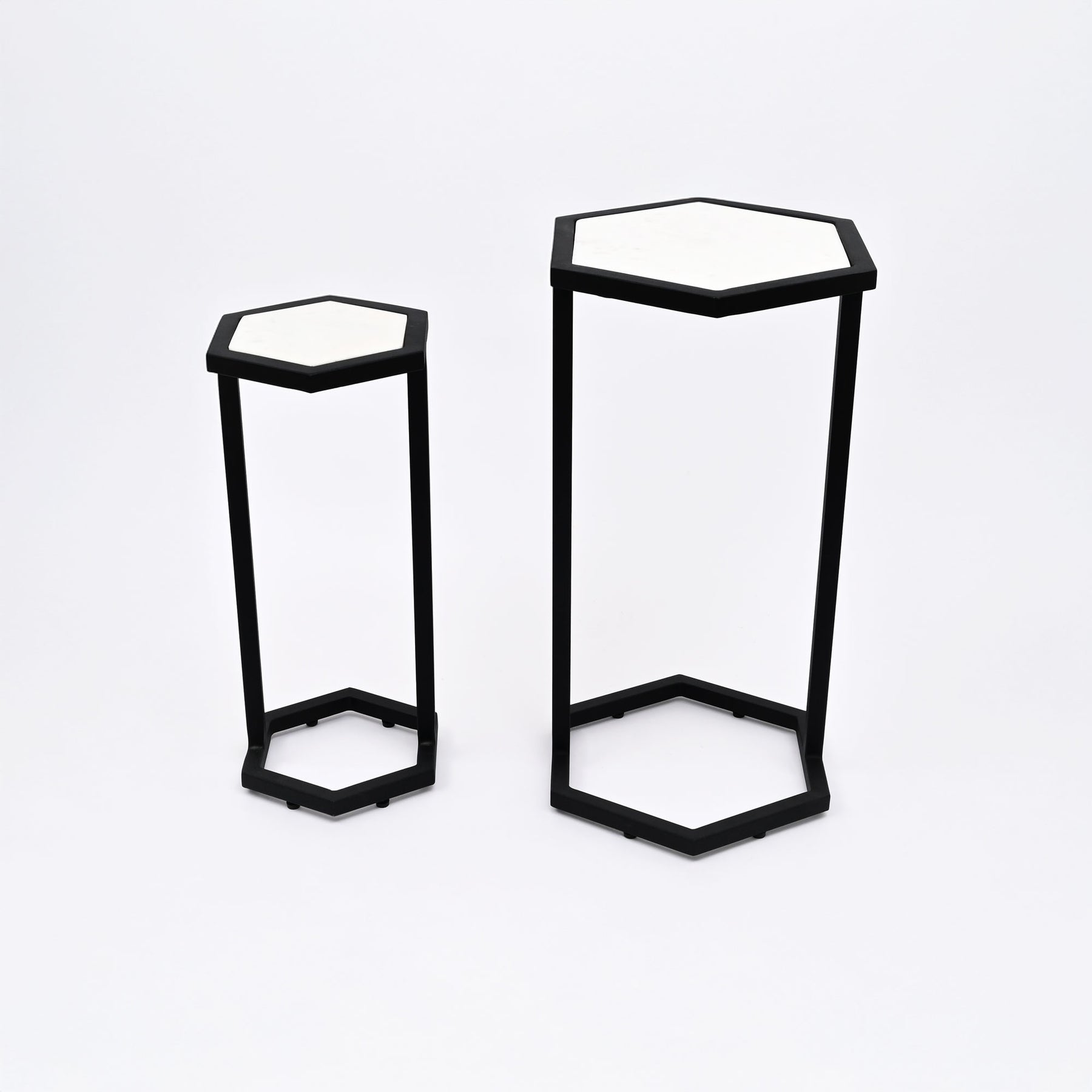 Add modern elegance and versatility to your home with this Set of 2 Hexagonal Marble Nesting Tables, crafted for both style and functionality. Each table features a smooth, genuine marble top paired with a sleek black powder-coated frame, creating a striking geometric statement. Nest the tables together for a layered, designer look, or use them separately as side tables, accent tables, or display stands. The space-saving design makes them ideal for both spacious living rooms and compact apartments, while premium materials ensure durability and timeless sophistication.