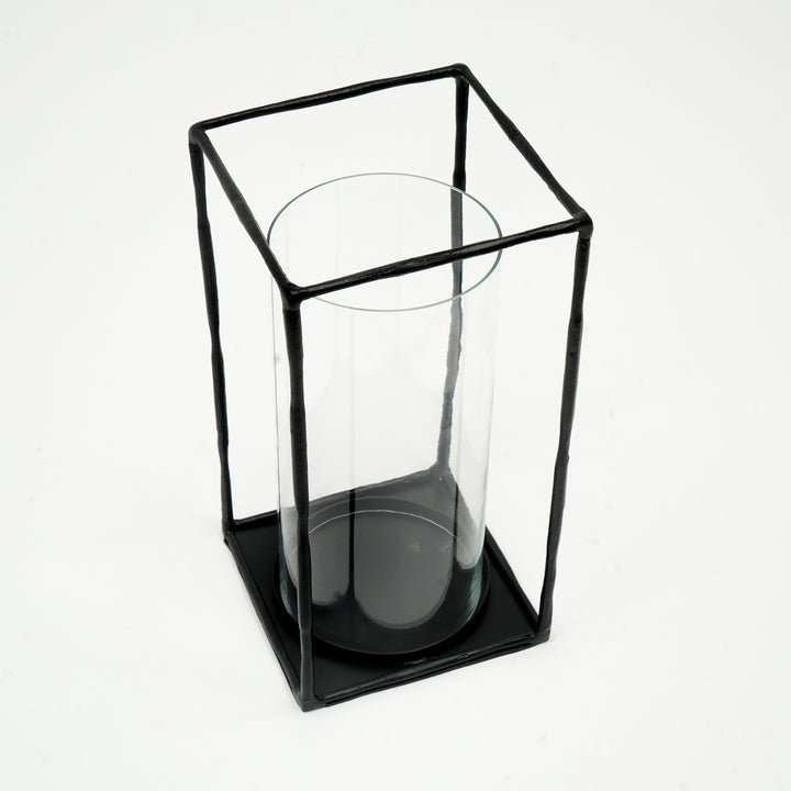 Beleuchten Sie Ihren Raum mit zeitlosem Charme mit dieser Laterne aus Aluminium & Glas im Hurricane-Stil. Fachmännisch gefertigt aus langlebigem, hochwertigem Aluminium und klarem Glas, bietet diese Laterne eine elegante und moderne Interpretation des klassischen Hurricane-Designs. Ihr schlanker Aluminiumrahmen sorgt für langanhaltende Haltbarkeit, während das transparente Glas einen schönen Blick auf das warme Leuchten im Inneren ermöglicht. Perfekt für Innen- und Außenbereiche, verleiht diese Laterne Terrassen, Wohnzimmern oder jeder gemütlichen Ecke eine stimmungsvolle Note. Ideal für Kerzen oder LED-Lichter, ist sie ein vielseitiges und elegantes Stück, das jede Einrichtung mit seiner raffinierten Ästhetik aufwertet.