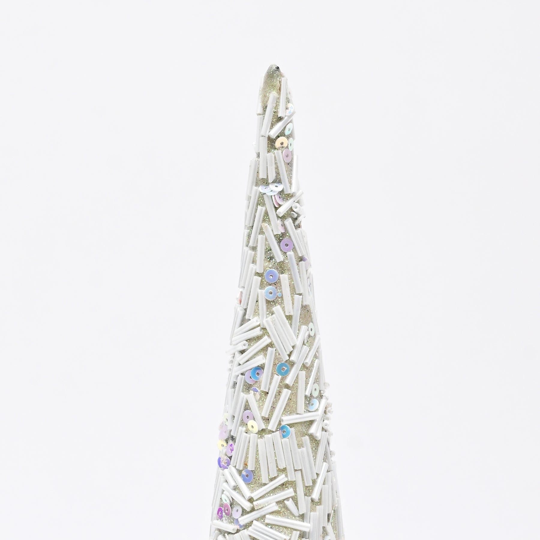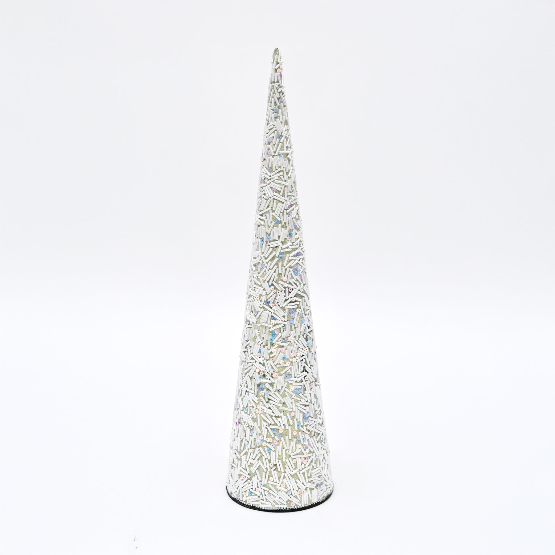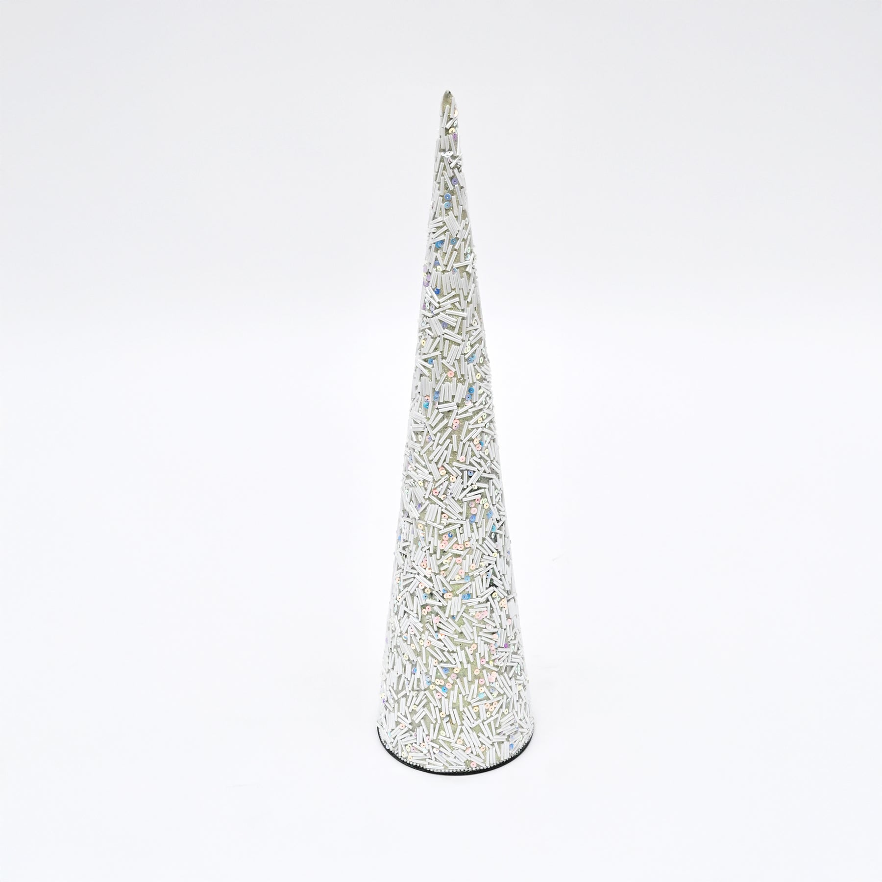 The smooth cone shape and subtle bead texture make it a versatile décor piece, perfect for modern, Scandinavian, or festive styling. Lightweight and easy to place, it works well on shelves, consoles, or seasonal displays.