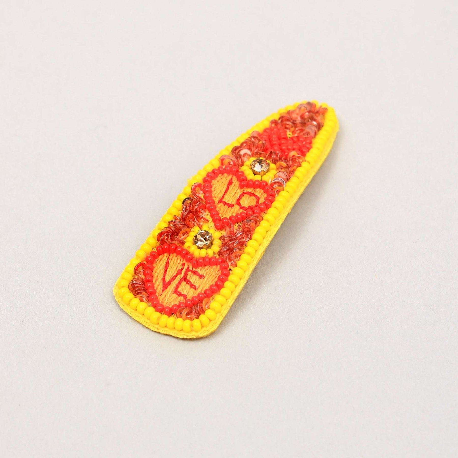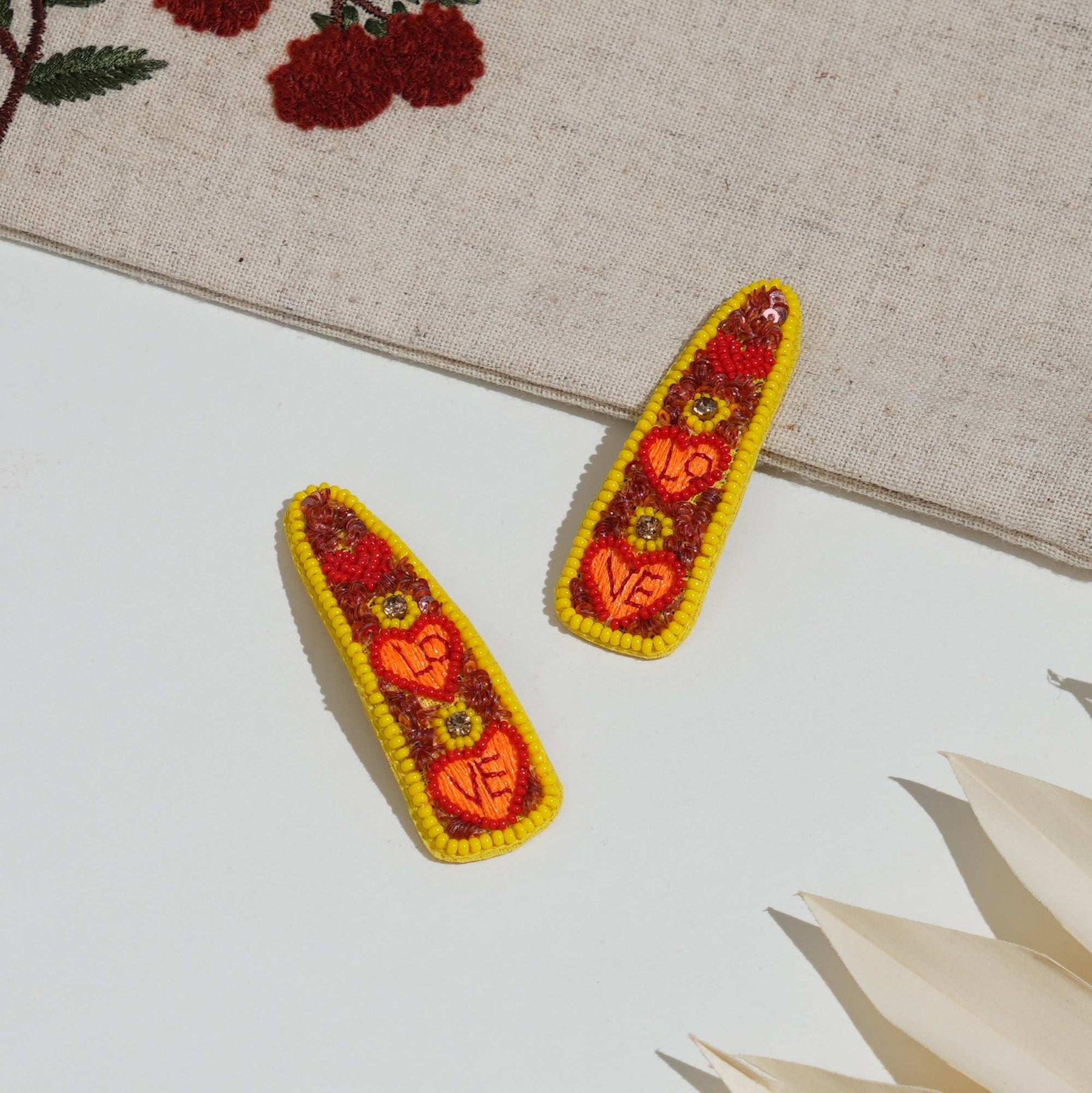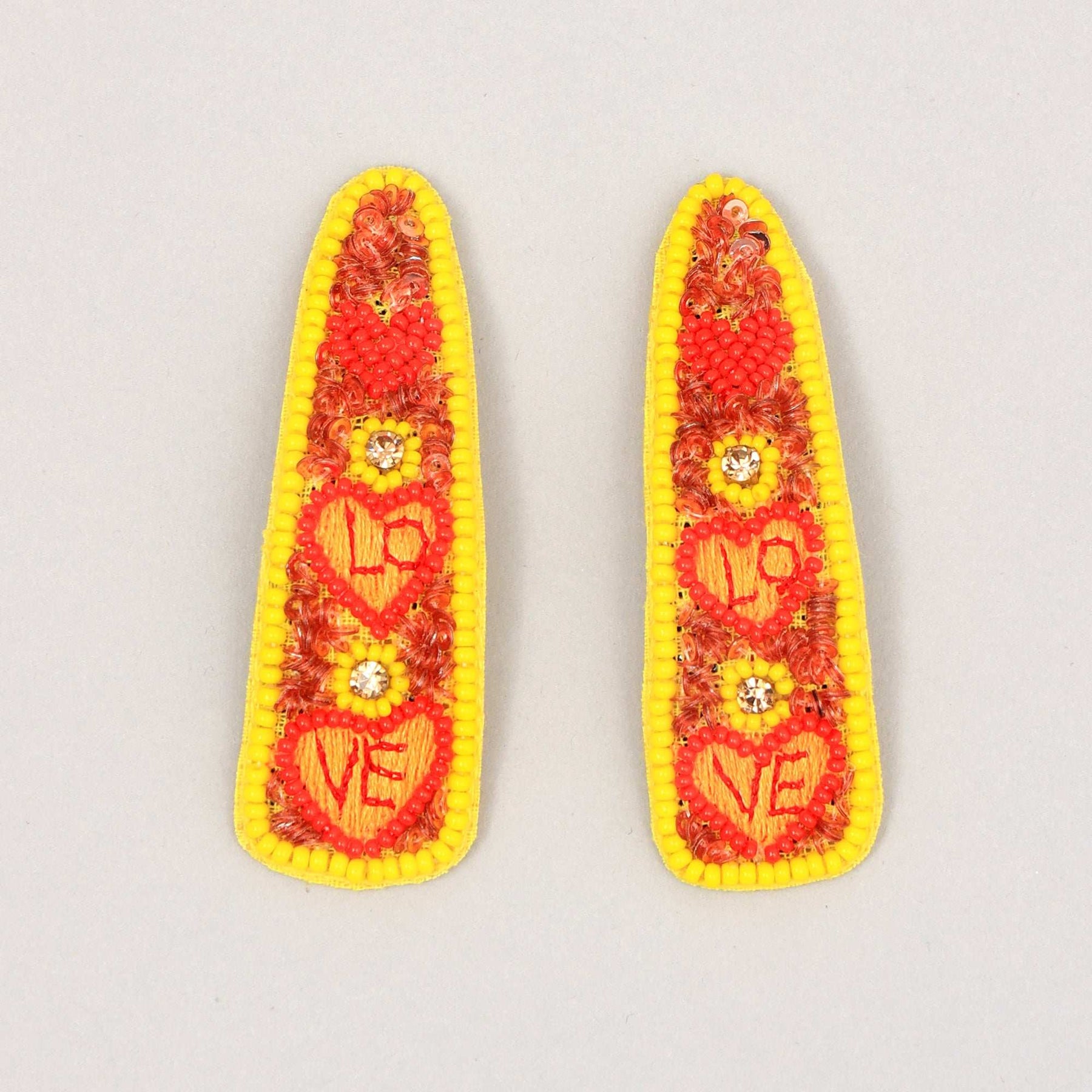 Una forma sencilla de añadir personalidad a tu look. Este clip para el cabello bordado presenta la palabra "Love" cosida con hilo colorido sobre una base resistente y ligera. Ya sea usado de manera casual o para complementar un conjunto divertido, ofrece estilo y sujeción para todo tipo de cabello. Un detalle encantador para quien disfruta de accesorios expresivos y hechos a mano.