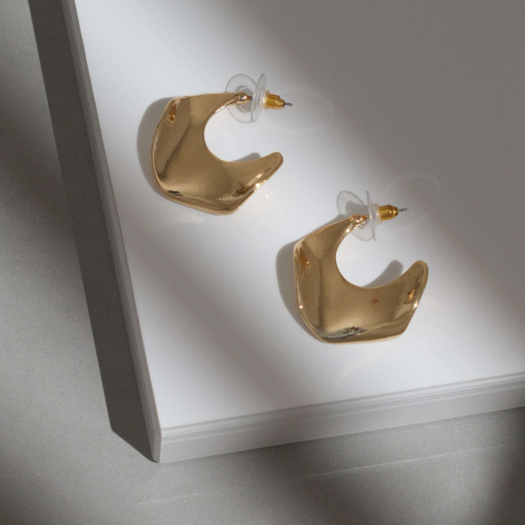 Estos aros modernos de oro aportan un look limpio y minimalista a cualquier conjunto. Ligeros, cómodos y fabricados con materiales hipoalergénicos, son perfectos para el uso diario o planes nocturnos. Un imprescindible para tu joyero.