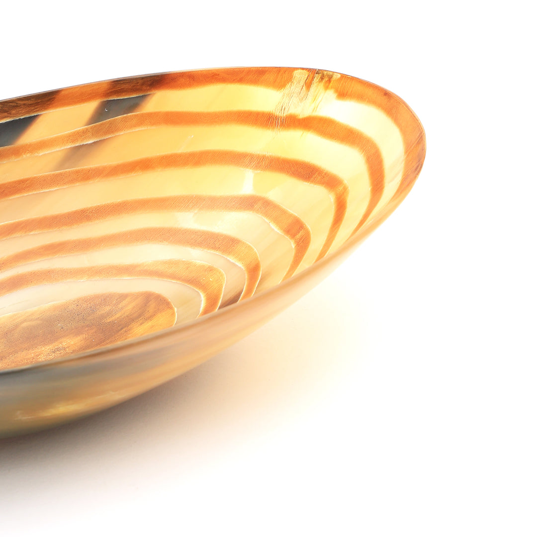 Agrega un toque de elegancia natural a tu hogar con el Cuenco Rayado en Cuerno. Elaborado con cuerno de origen sostenible, este cuenco único presenta un impresionante diseño a rayas que combina tonos terrosos con una estética moderna y sofisticada. Cada pieza es única, mostrando las variaciones naturales del material para un aspecto distintivo. Perfecto para servir aperitivos, exhibir objetos decorativos u organizar pequeños esenciales, este cuenco es una adición llamativa para cualquier sala, mesa de comedor o recibidor. Duradero y elegante, el Cuenco Rayado en Cuerno ofrece belleza y funcionalidad, elevando la decoración de tu hogar con su encanto atemporal.