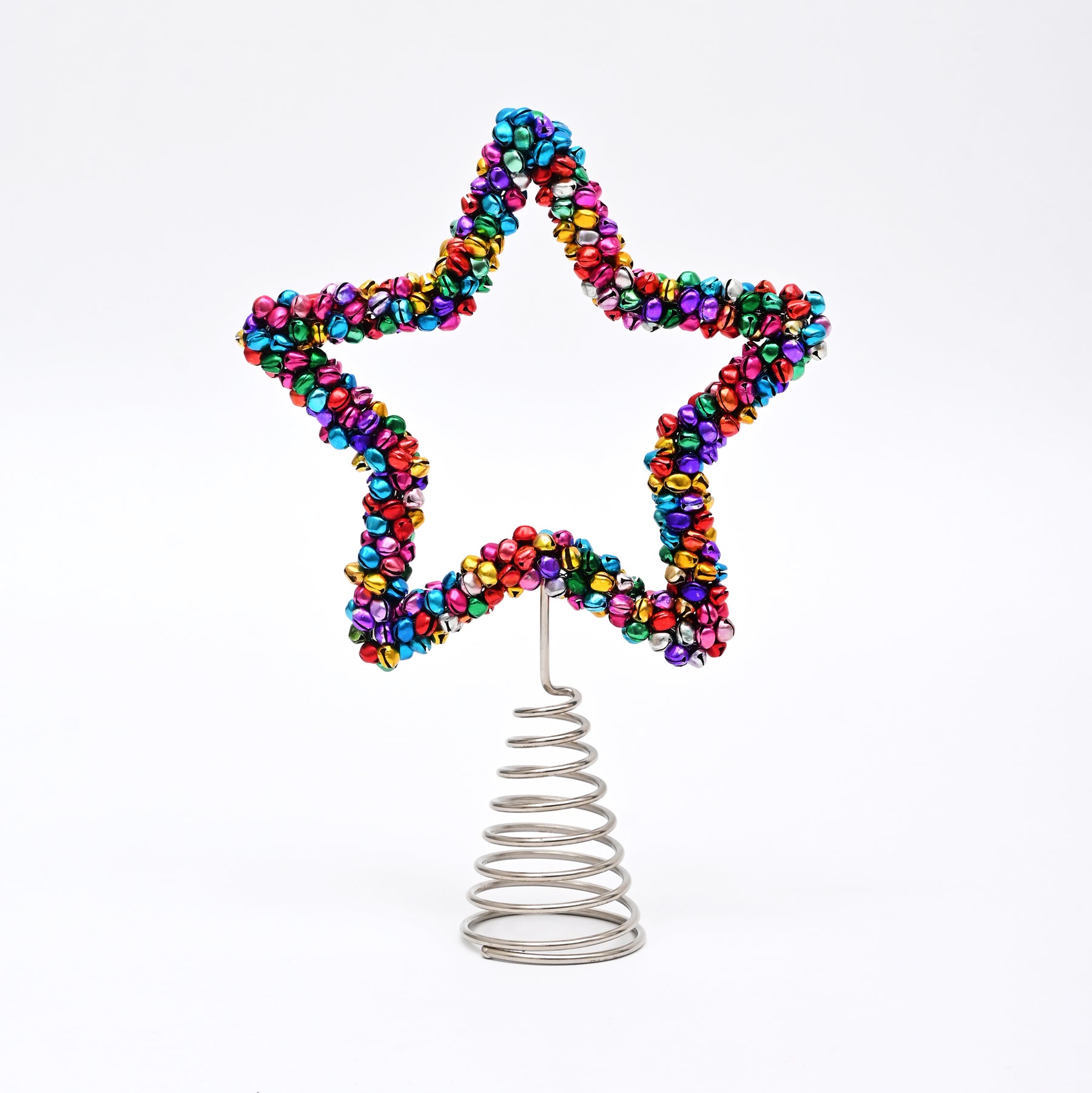 This multicolour bells star Christmas tree topper adds a joyful and festive finish to holiday décor..