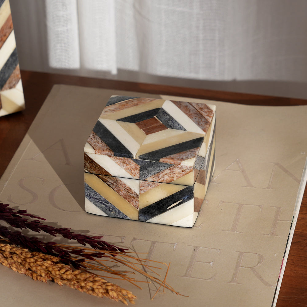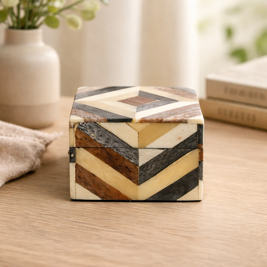La caja para pastillas con incrustación de patrón de ladrillo es una impresionante fusión de funcionalidad y arte. Expertamente hecha a mano con hueso de alta calidad y MDF, esta exquisita pieza muestra un sofisticado patrón de ladrillo en tonos cálidos marrón y gris. Su intrincado trabajo de incrustación refleja una artesanía excepcional, convirtiéndola en algo más que una solución de almacenamiento: es una declaración de estilo.