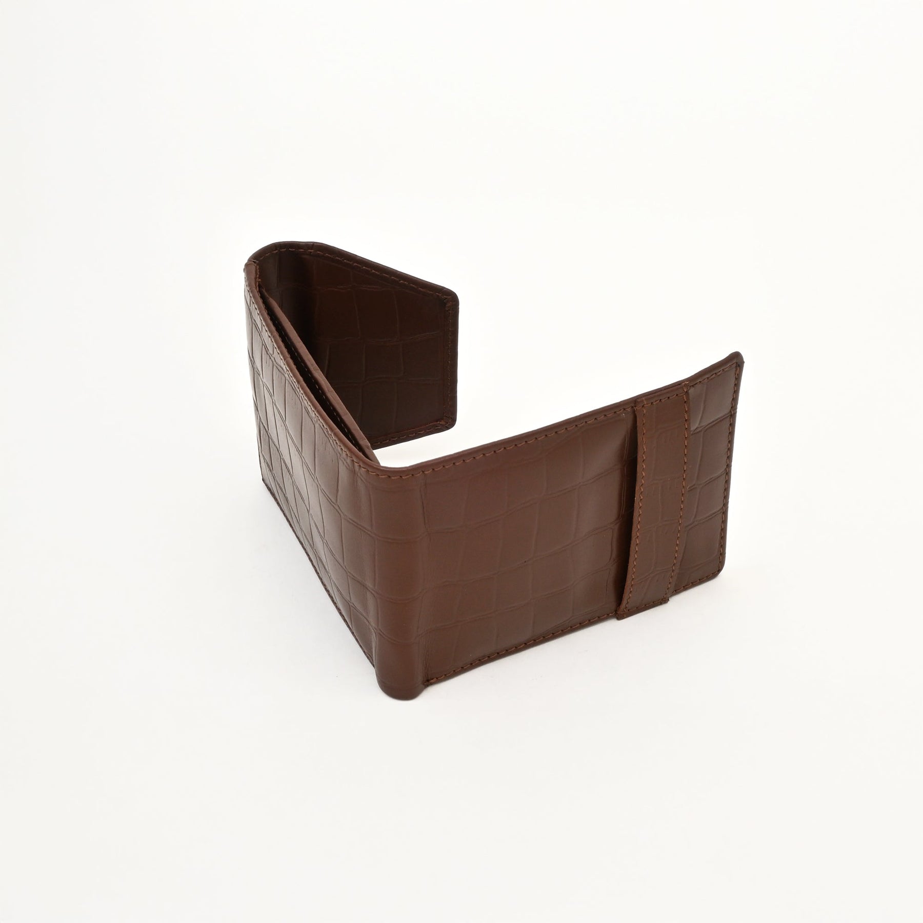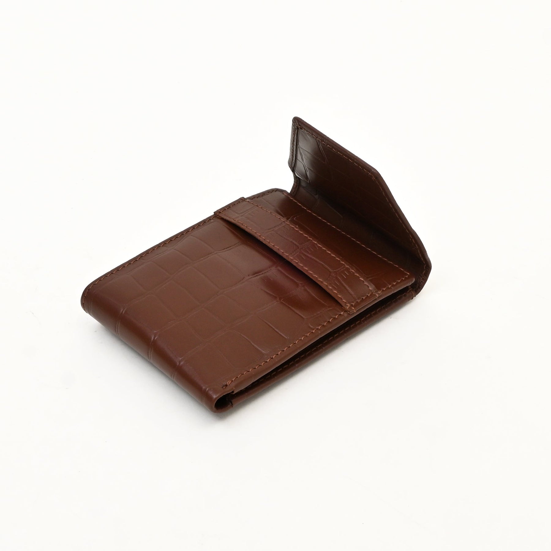 Experience refined craftsmanship with the Leather Wallet 3S Scrbrn, beautifully handcrafted from super premium brown croc look napa leather. Designed for those who value both style and practicality, this wallet fits European currency comfortably while maintaining a slim, elegant profile. Featuring 6 card slots and a large coin pocket, it ensures smart organization for your essentials. The twill weave fabric lining enhances durability, and the smooth edge finish gives it a sleek, polished appearance.