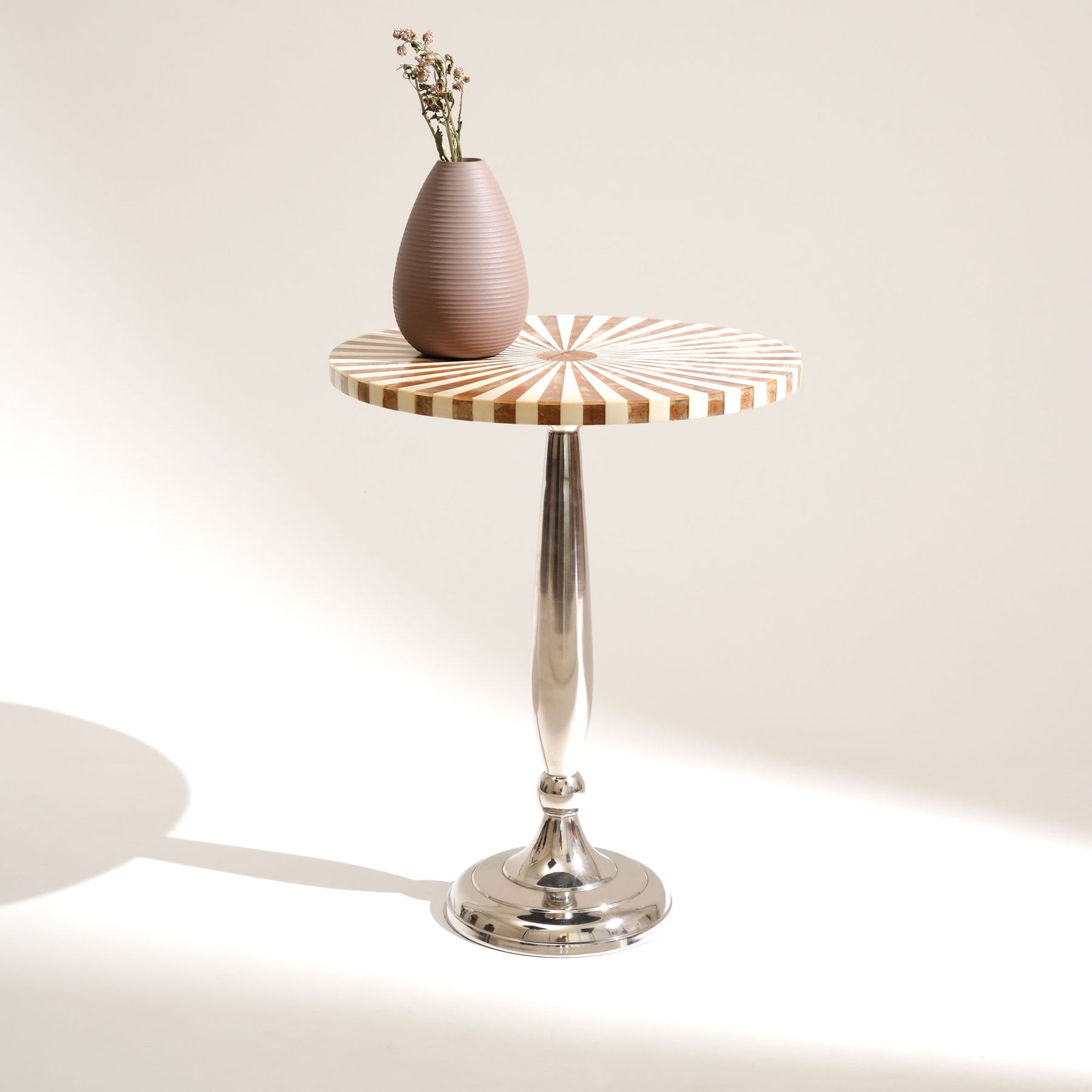 A refined blend of craftsmanship and modern design, this sunburst accent table adds elegance, functionality, and visual impact to any interior setting.