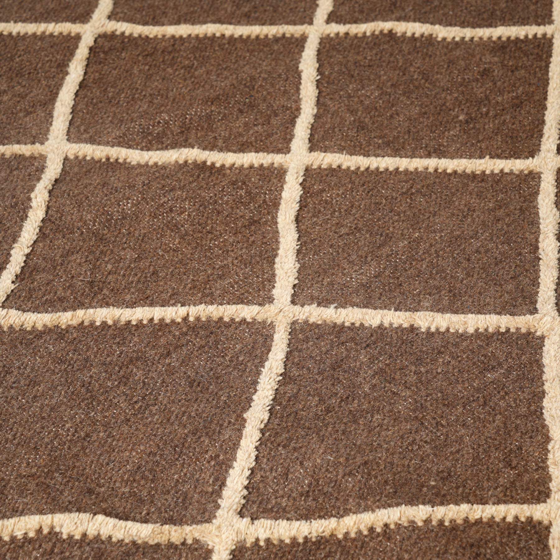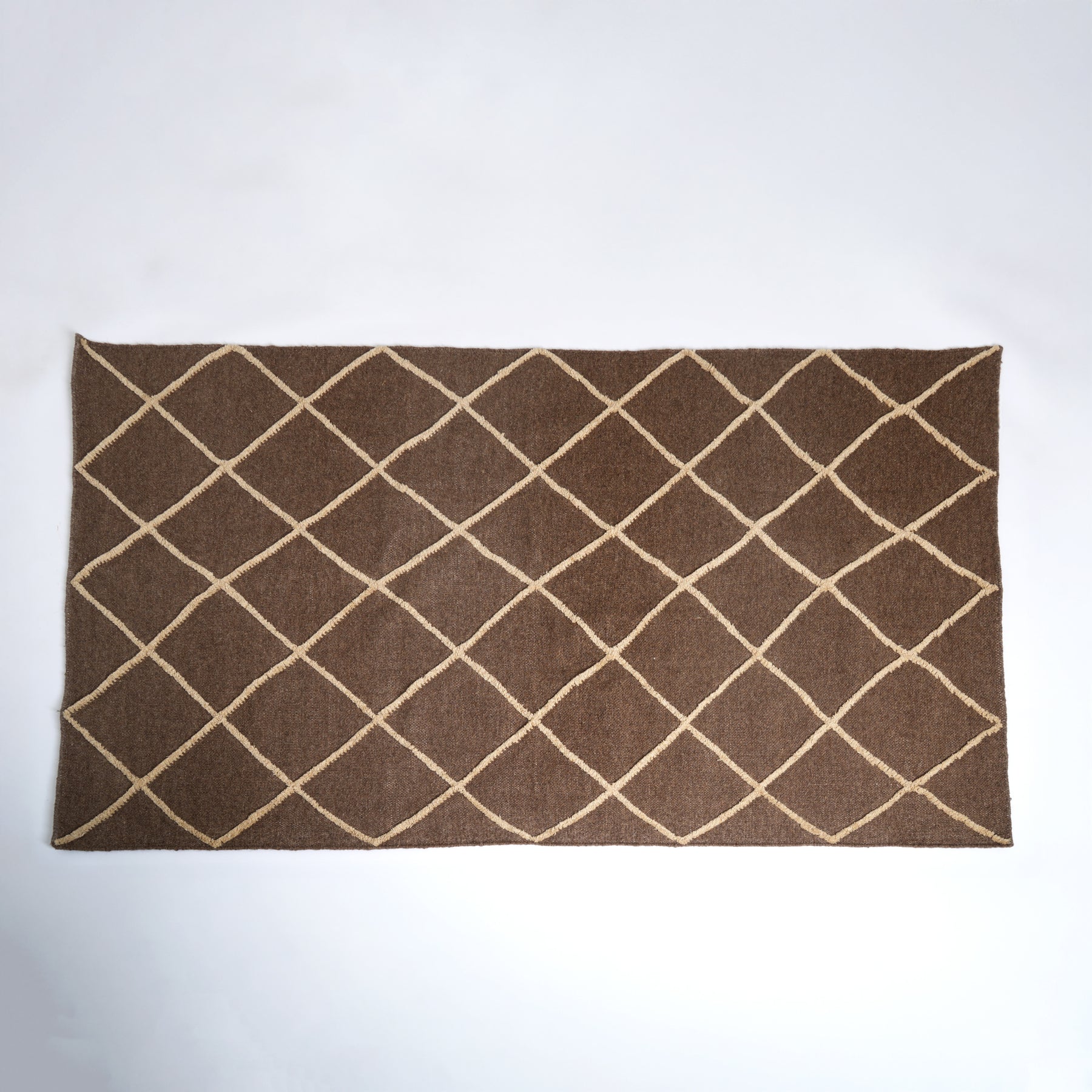 Hand Woven Lattice Rug – Wool & Cotton | Dark Brown