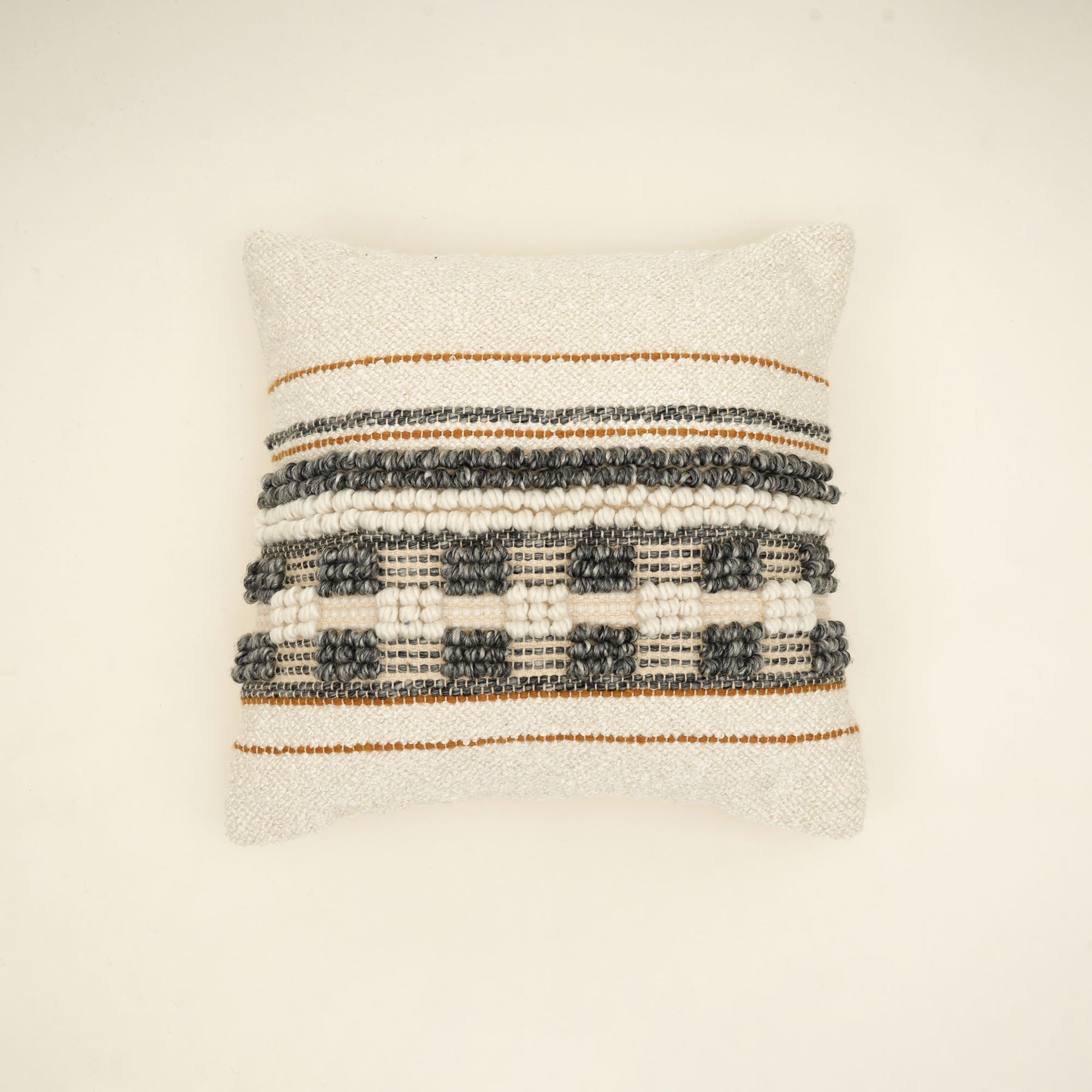 Brighten your home with the lively charm of this Multi Handwoven Cushion, thoughtfully crafted by skilled artisans to bring color, texture, and personality to any space. Its beautifully handwoven design features a vibrant mix of patterns and hues, making it a standout accent for sofas, armchairs, or beds. Made from high-quality, durable materials, this cushion provides long-lasting comfort while adding an artistic touch to your décor. The rich blend of colors complements a wide range of interior styles, from eclectic and bohemian to modern and contemporary, allowing you to style it effortlessly with existing home accessories. Designed for everyday convenience, it comes with a concealed zipper that makes removing and cleaning the cover simple and hassle-free. Whether used as a bold statement piece or layered with neutral cushions, it adds warmth, charm, and handcrafted appeal to any room.