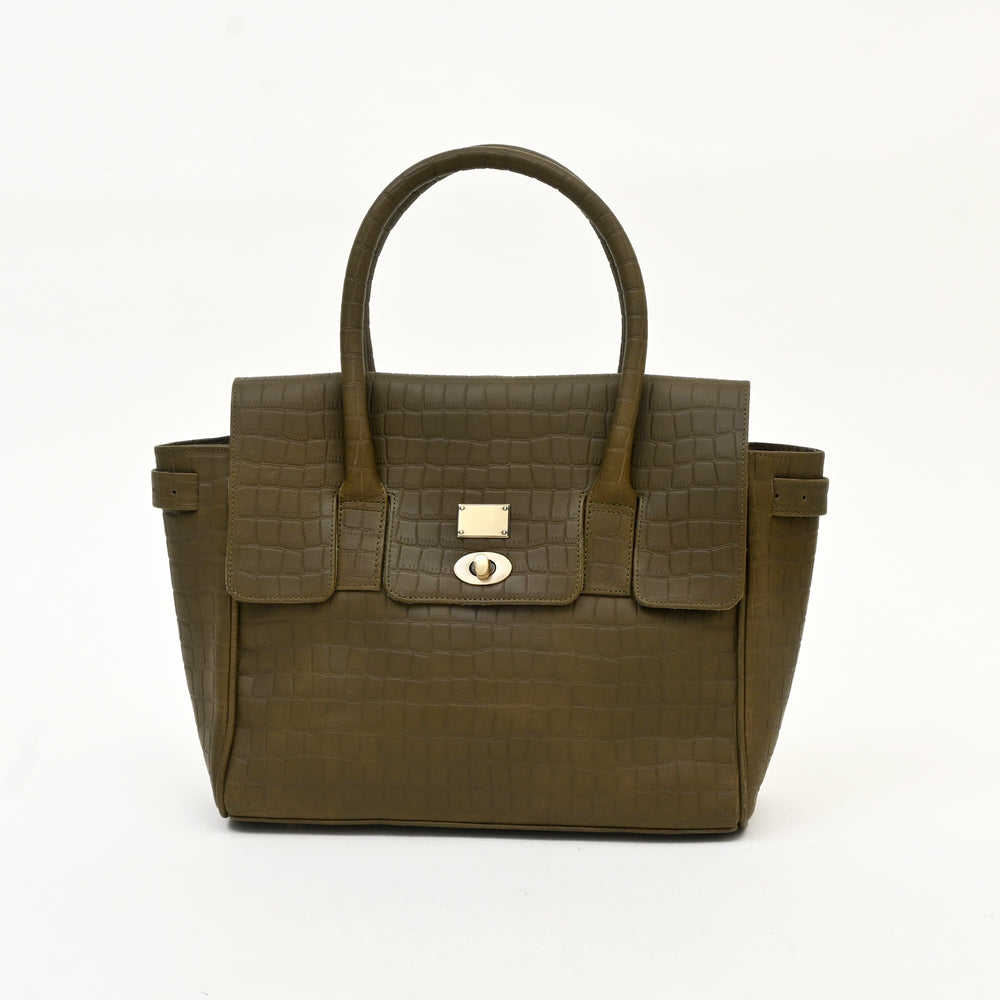 Elegance meets everyday ease with this beautifully handcrafted green croc-look napa leather handbag, made from premium full-grain leather that exudes sophistication and lasting quality. The flap closure with a chic twist-lock mechanism adds both glamour and security, while the adjustable internal strap allows you to customize the bag’s shape and capacity to suit your style. Inside, a spacious main compartment and a secure zipper pocket keep your essentials neatly organized. Stylish, versatile, and timeless this handbag is designed to transition seamlessly from workdays to elegant evenings out, embodying effortless grace and practicality.