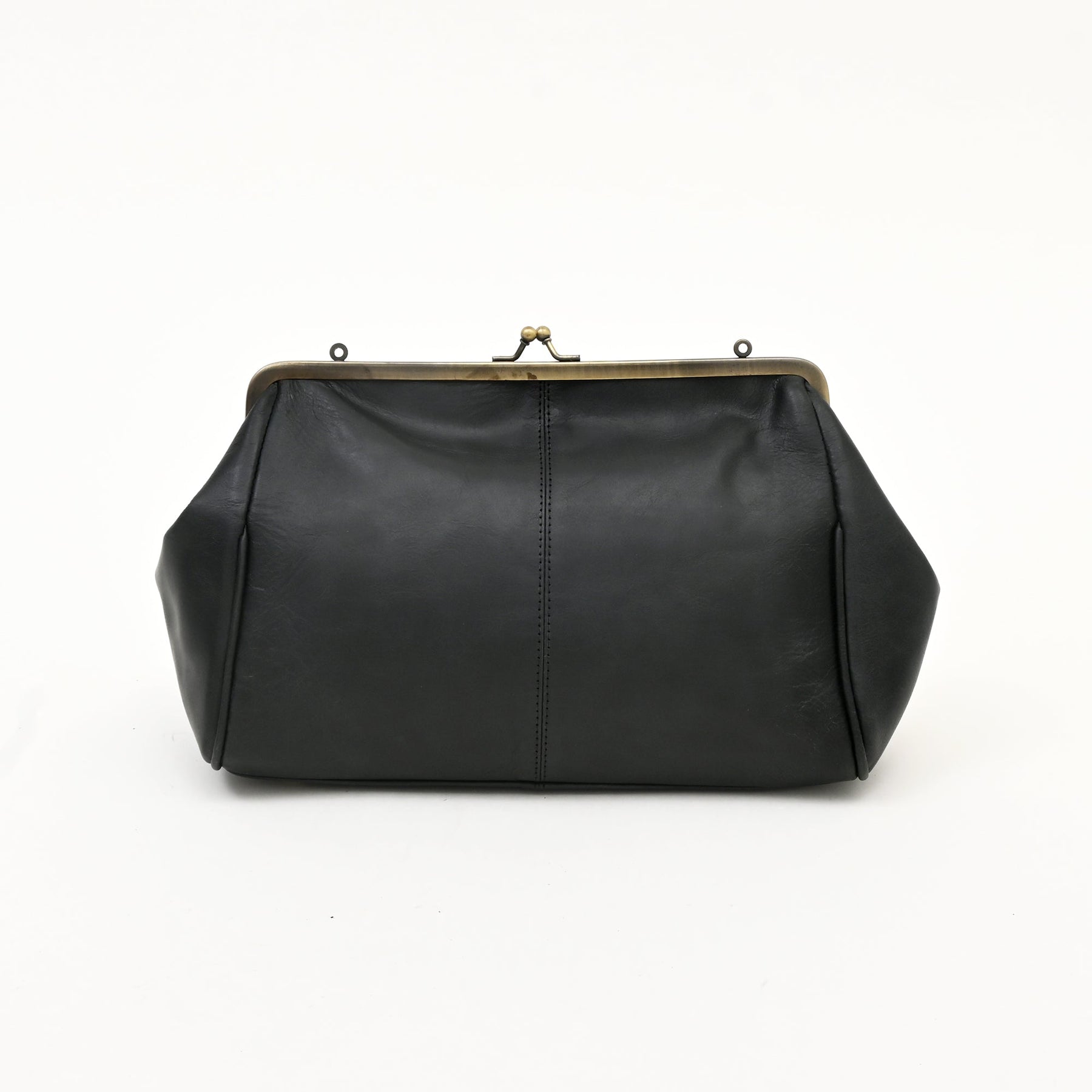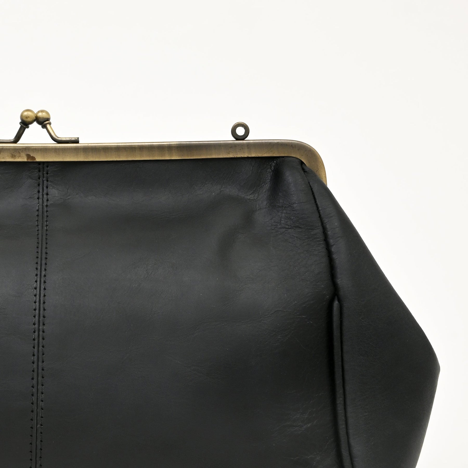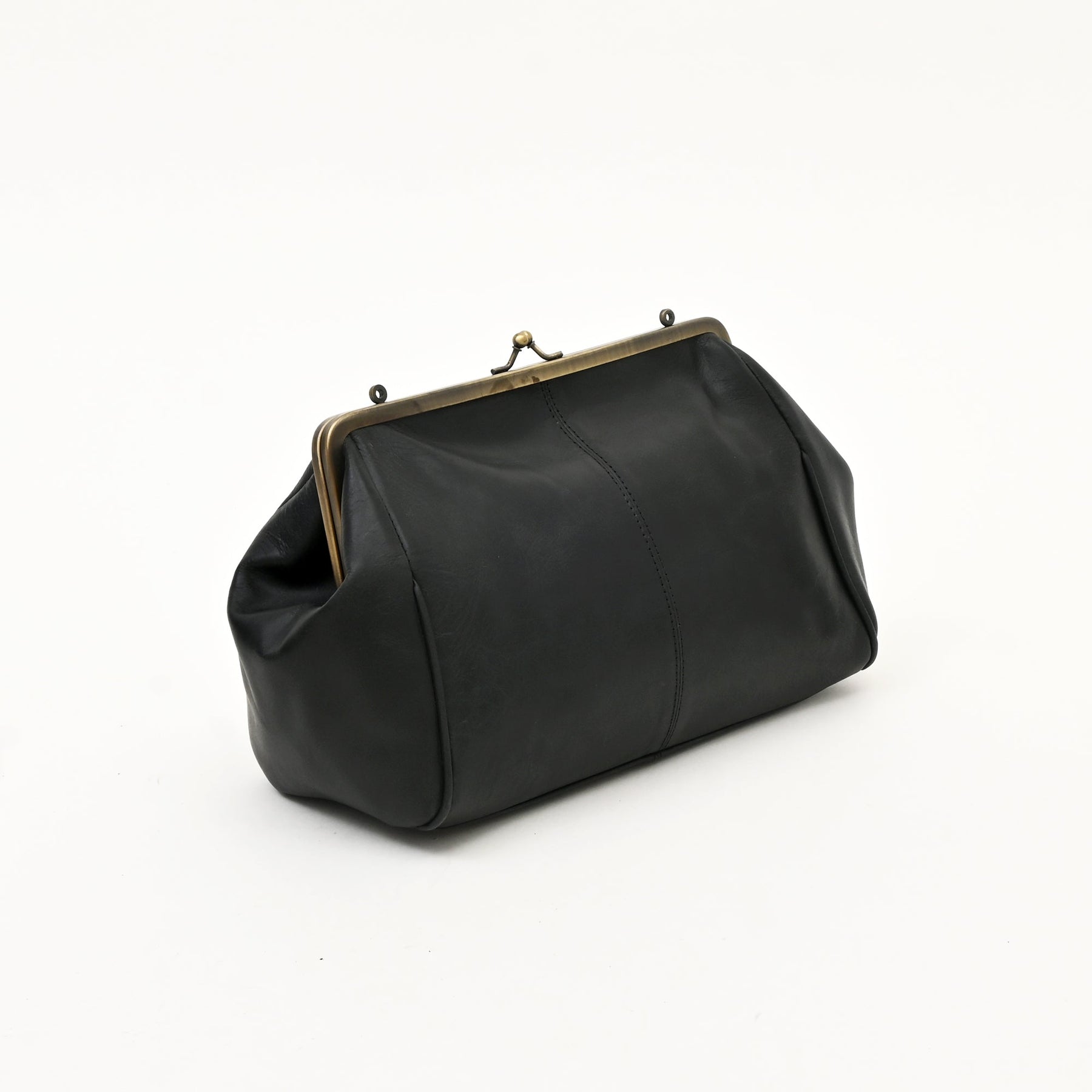 Turn heads with this chic black napa leather side bag, meticulously crafted from premium full-grain leather that radiates timeless elegance and luxury. Designed with a high-quality brass alloy frame closure featuring a classic kiss-lock mechanism, it beautifully blends vintage charm with modern sophistication. The structured silhouette offers a spacious main compartment, complemented by an internal zipper pocket to keep your essentials secure and organized. Thoughtful details like brass alloy feet at the base provide both protection and a refined finish. Perfect for parties, dinners, or elegant evenings out, this side bag is the perfect combination of style, grace, and practicality.